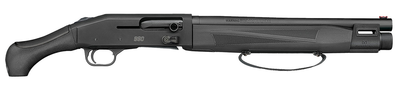 The 990 AfterShock small size, big tactical performance. Ultra-compact and easy to maneuver, it delivers 5+1 semi-auto convenience paired with a host of functional tactical features. Inside, the 990's durable gas system and corrosion-resistant internal parts (nickel boron-coated gas piston, magazine tube, hammer and sear), an enlarged/beveled loading port, elongated elevator and anodized follower combine for smooth operation. The ergonomic AfterShock grip with rubberized palm pad, a streamlined forend with Mossberg signature texturing and an embossed strap for a solid hold; plus a magazine tube extension with M-LOK mounting slots on the sides and bottom for easy accessory. 5+1 Capacity w/2.75" shells.